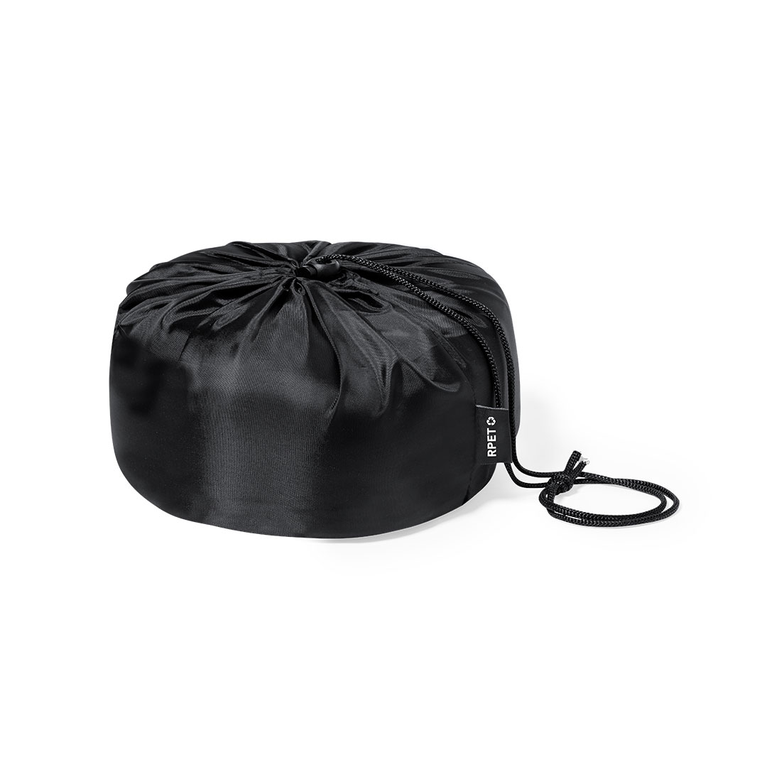 Almohadilla fabricada en suave tejido de RPET, con un esponjoso relleno adaptable. Con capucha para mayor calidez y equipada con accesorio de ajuste personalizado, asa de transporte y funda de almacenamiento. Incluye distintivo de RPET en etiqueta.El material RPET se elabora a partir de plástico reciclado, para así fomentar la reutilización de residuos plásticos y ayudar a la sostenibilidad del planeta. Funda Poliéster RPET